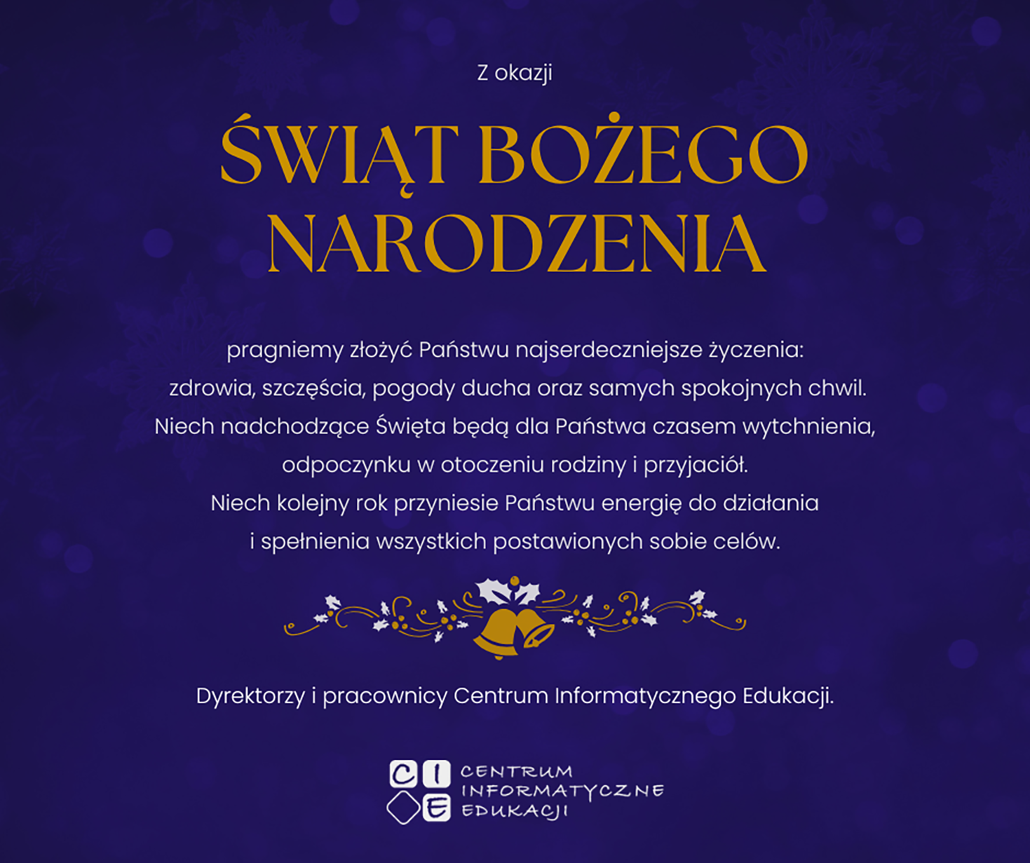 Z okazji Świąt Bożego Narodzenia pragniemy złożyć Państwu najserdeczniejsze życzenia: zdrowia, szczęścia, pogody ducha oraz samych spokojnych chwil.